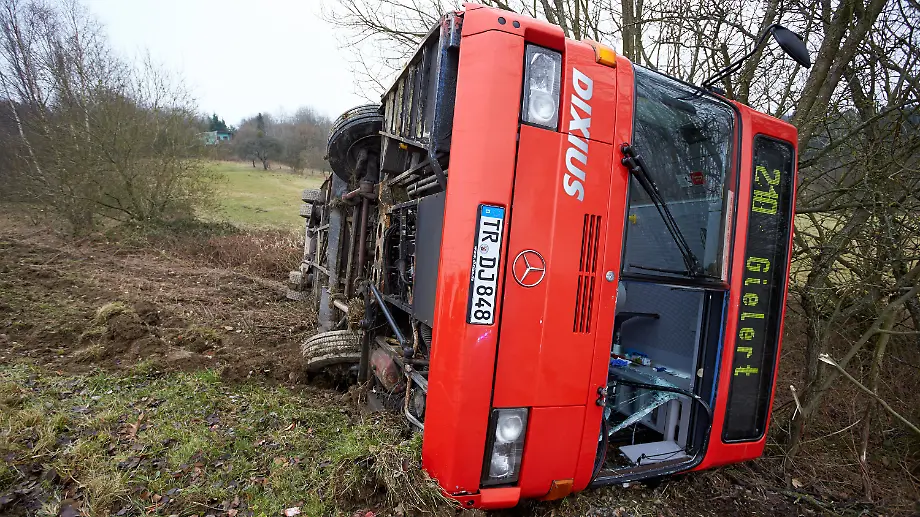 Mehrere Kinder und Fahrerin verletztSchulbus kippt bei Trier um
