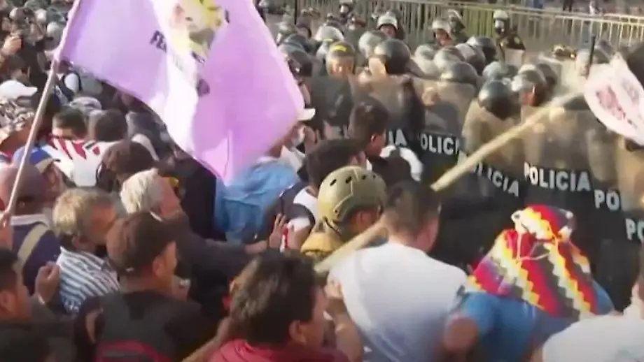 12.11.2022, 12:45 UhrIn der peruanischen Hauptstadt Lima kommt es im Rahmen einer Demonstration zu heftigen Ausschreitungen. Befürworter des Präsidenten Castillo wollen ihn in seinem Amt bestärken, die Gegenseite wirft ihm jedoch Korruption vor. Amtsenthebungsverfahren gegen Castillo bleiben bisher erfolglos.
