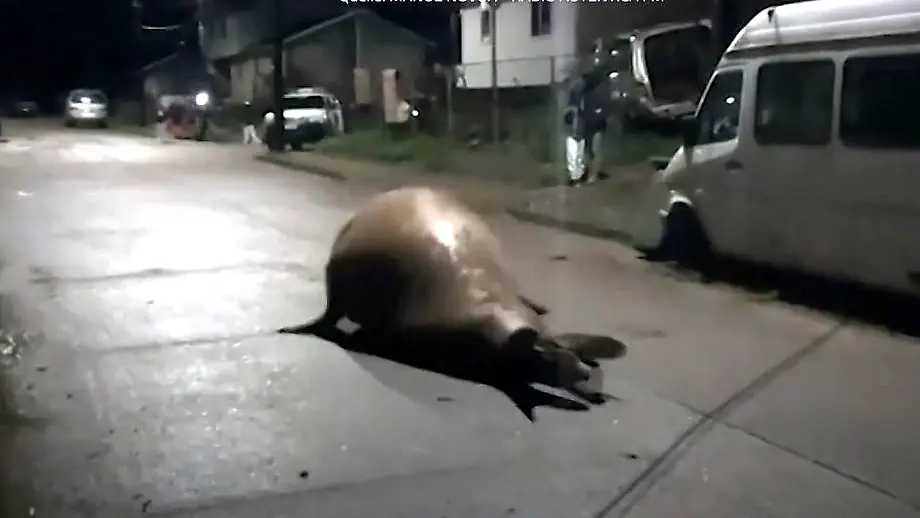 07.10.2020, 19:28 UhrSee-Elefanten werden bis zu vier Meter lang und vier Tonnen schwer. Nicht unbedingt ein Tier, das man bei sich im Vorgarten sehen möchte. Im chilenischen Puerto Cisnes lassen sich die Bewohner vom unerwarteten Besuch eines solchen Meeres-Kolosses aber nicht aus der Ruhe bringen.