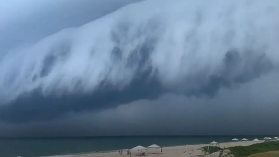 18.07.2022, 11:41 UhrSind sie am Himmel zu sehen, dann kündigen sie meist ein Unwetter an: Shelf-Wolken. Ein eindrucksvolles Exemplar dieses Wetterphänomens hängt im mexikanischen Miramar über dem Strand.