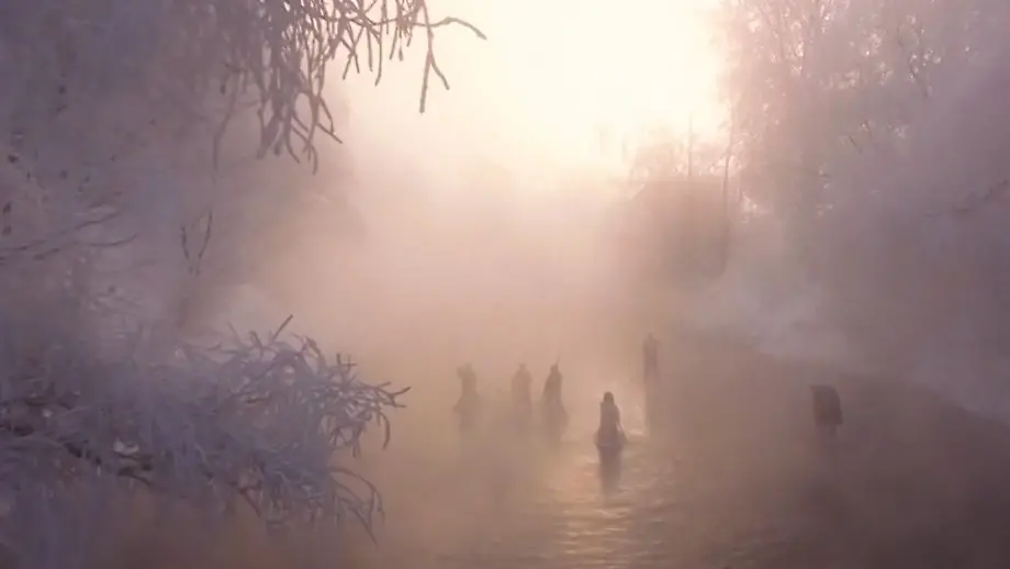 Gefrorener Nebel bei -40 GradSibirische Paddeltour gleicht Reise durch Eispalast