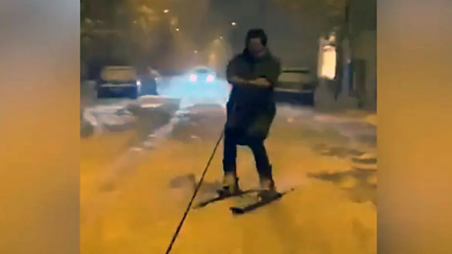 Jahrhundert-Schnee in SüdeuropaSpanier fahren mitten in Madrid Ski