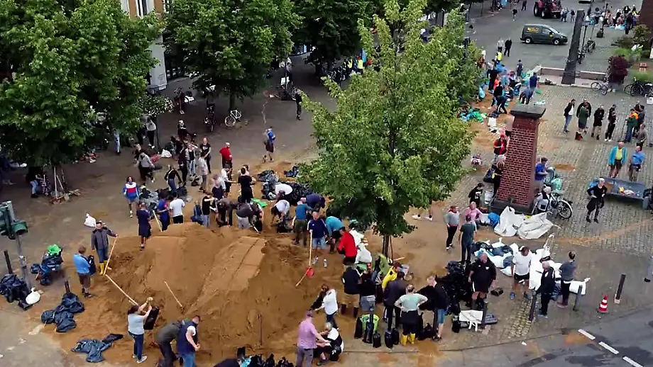 16.07.2021, 16:30 UhrIm nordrhein-westfälische Erftstadt rutschen ganze Häuser ab, zur Stunde laufen Suchen nach Vermissten. Der Stadtteil Lechenich ist noch von den Wassermassen verschont - doch schon jetzt bereiten sich die Anwohner mit Hochdruck vor.