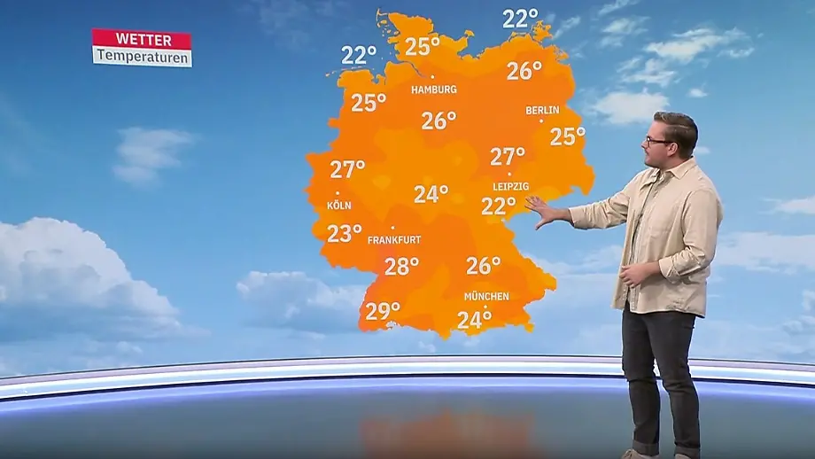 18.08.2025, 12:44 UhrDie Hitzewelle ist vorerst vorbei, das nahende Gewittertief erreicht Deutschland erst ab Mittwoch. Und so ist der Montag vor allem eins: der perfekte Sommertag. Mit viel Sonnenschein und einer trotzdem angenehm kühlen Nacht geht es auch am Dienstag weiter, ehe es zur Wochenmitte wieder etwas turbulenter wird.