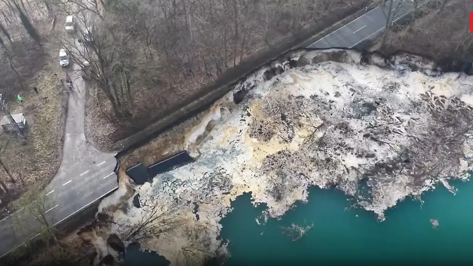 09.02.2026, 21:40 UhrIn Coesfeld in Nordrhein-Westfalen rutscht ein rund 80 Meter langes Straßenstück in eine angrenzende Quarzgrube. Drohnenaufnahmen zeigen das Ausmaß des Schadens und ein neu aufgetauchtes Video den Moment des Absenkens.