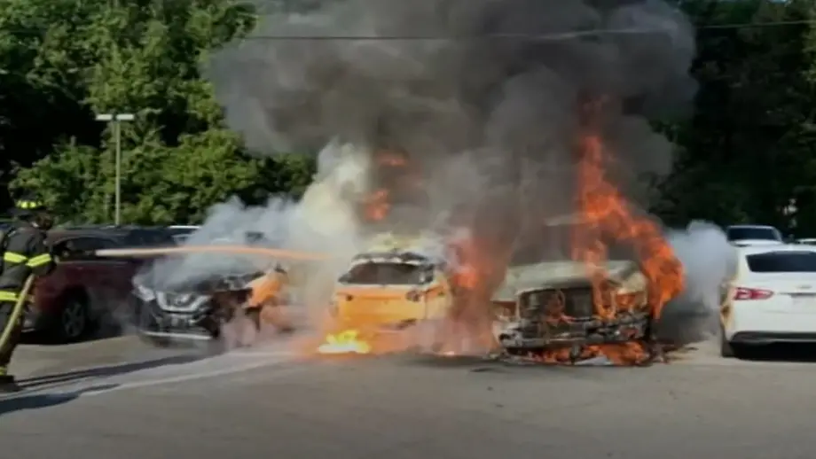 06.09.2023, 13:21 UhrIn West Virginia in den USA kommt es auf einem Parkplatz zu einer folgenschweren Störung einer Stromleitung. Das Kabel kracht auf parkende Autos und setzt mehr als ein Dutzend Fahrzeuge in Brand. Durch das Feuer platzen einige Treibstofftanks. Die Feuerwehr kann durch schnelles Einschreiten Schlimmeres verhindern.