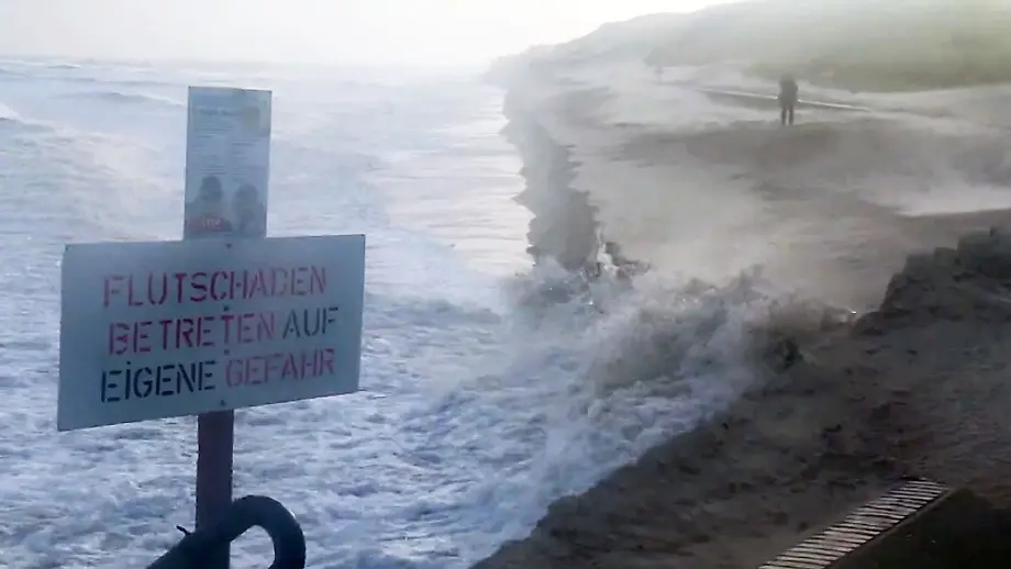 Fluten und Böen in DeutschlandSturm reißt Strand weg, "Badewannen-Effekt" in Flensburg
