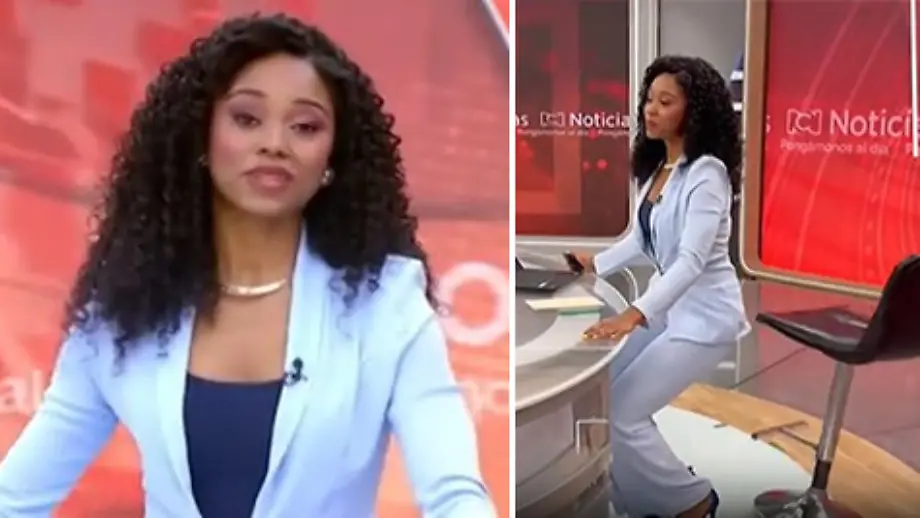 04.06.2025, 18:54 UhrWährend einer Nachrichtensendung im kolumbianischen Bogota kommt einer Nachrichtenmoderatorin der Stuhl abhanden. Das Missgeschick fällt Zuschauern der Live-Sendung jedoch gar nicht auf - Kniebeugen sei Dank.