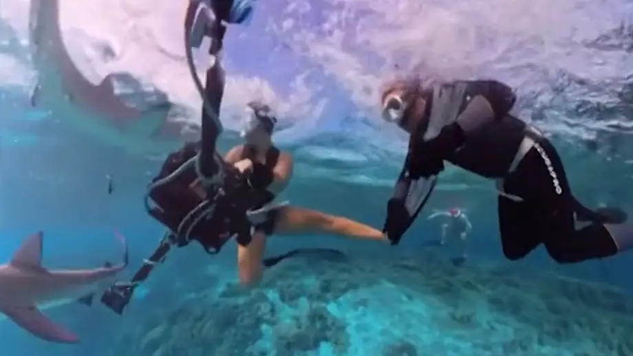 Raubtier attackiert KameraTaucherin schwimmt plötzlich Auge in Auge mit Haien