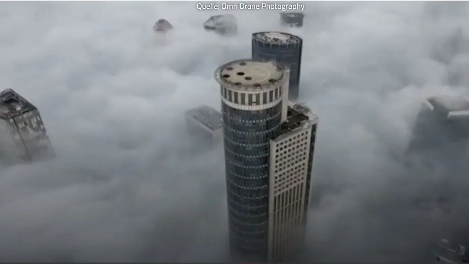 04.01.2021, 14:29 UhrTel Aviv erlebt ein für die Jahreszeit ungewöhnliches Wetterphänomen. Dichter Nebel hüllt die israelische Großstadt in so dichtes Grau, dass nur die Spitzen der Wolkenkratzer aus den Schwaden herausragen. Die Sicht beträgt nur wenige Meter.