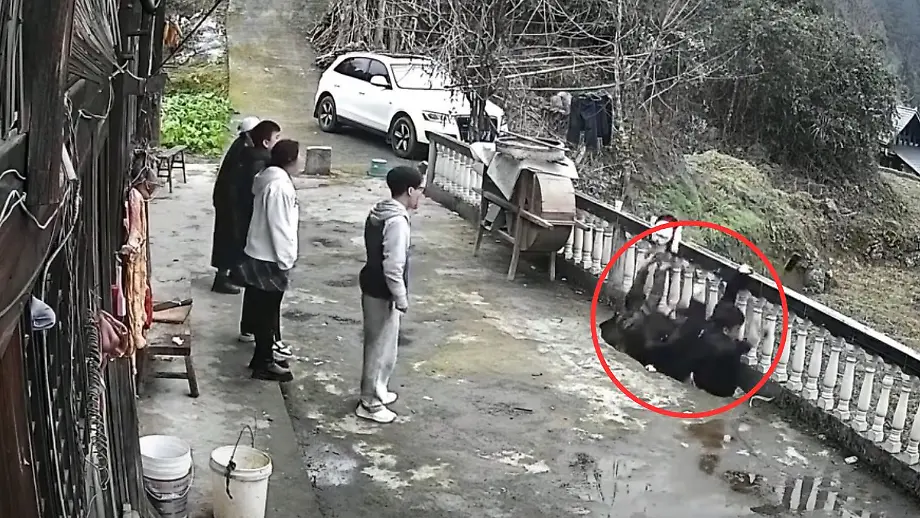 09.02.2026, 20:21 UhrIn der südchinesischen Stadt Zunyi wird ein Video-Dreh mit einer Drohne jäh beendet: Durch einen Fußtritt zu viel stürzt eine alte Terrasse ein - drei Menschen stürzen zwei Meter in die Tiefe. Ernsthaft verletzt wird dank des weichen Bodens aber niemand.