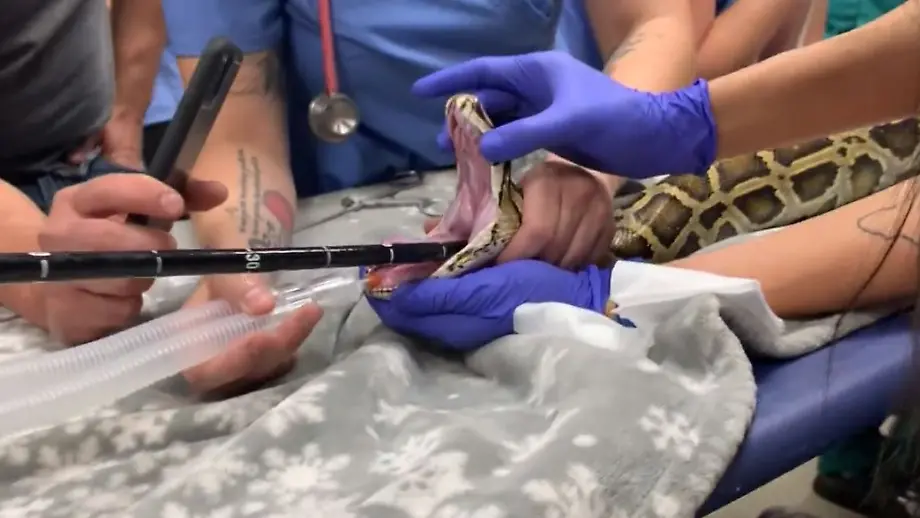 Kaum zu glauben, aber wahrTierärzte holen Decke aus Magen von Python