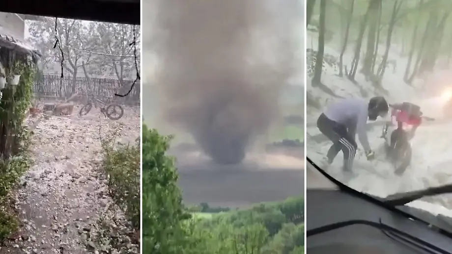 08.05.2025, 07:30 UhrUnwetter-Chaos in Osteuropa: Handyaufnahmen zeigen, wie in der Nähe der ostrumänischen Stadt Tulcea ein Tornado über ein Feld fegt und nördlich der Hauptstadt Bukarest bis zu Golfball-große Hagelbrocken vom Himmel fallen.