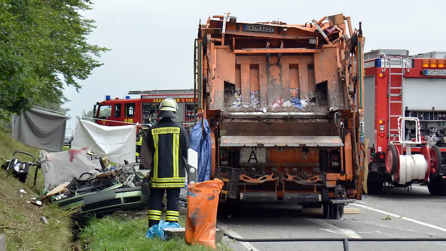 11.08.2017, 18:18 UhrIm baden-württembergischen Nagold ereignet sich ein tragisches Verkehrsunglück: Ein 26 Tonnen schwerer Mülllaster biegt scheinbar ungebremst in eine Kreuzung, kippt um und begräbt einen PKW unter sich. Für alle fünf Insassen kommt jede Hilfe zu spät, sie sterben an Ort und Stelle.
