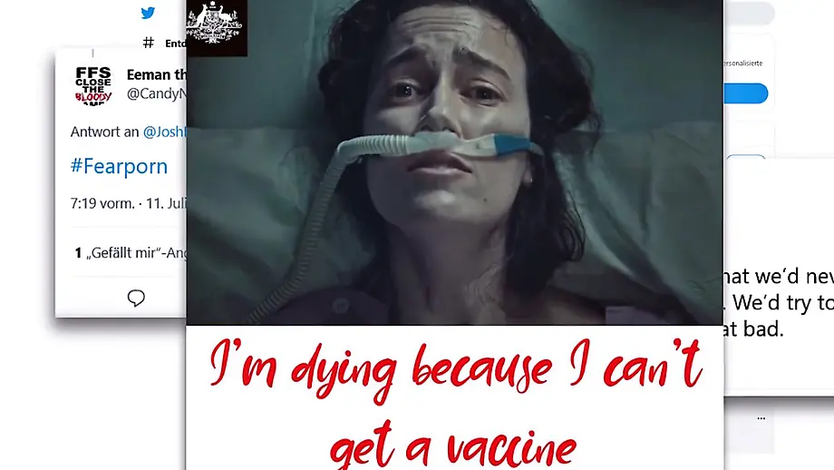 13.07.2021, 19:14 UhrDas Video mit einer um Luft ringenden Corona-Patientin soll die lahmende Impfkampagne in Australien anstoßen. Doch stattdessen zieht die australische Regierung damit jede Menge Wut auf sich. Vor allem die Impf-Willigen fühlen sich geradezu verhöhnt. Im Internet machen sie ihrem Ärger Luft.
