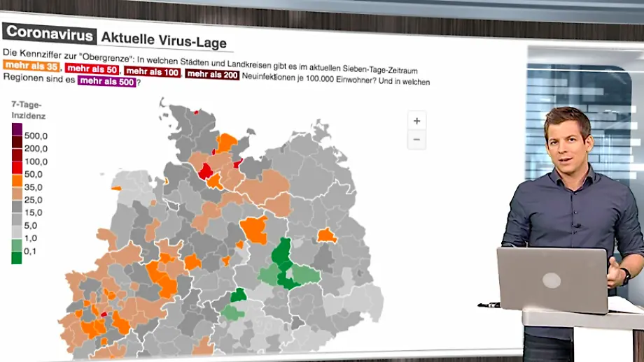 06.08.2021, 12:52 UhrWie hat sich die Zahl der täglichen Neuinfektionen entwickelt? Wie ist die Lage auf den Intensivstationen? Mit aktuellen Fakten zum Infektionsgeschehen ordnen das ntv-Moderatorenteam Daniel Schüler und Katrin Neumann zusammen mit dem Epidemiologen Dr. Timo Ulrichs die Corona-Lage in Deutschland und der Welt ein.