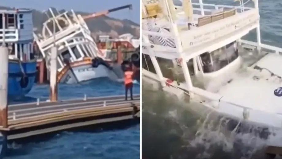 17.04.2026, 16:23 UhrBeim Anlegen in einem Hafen auf der thailändischen Insel Ko Lan kommt es zum Unglück: Eine vollbesetze Fähre fährt mit hoher Geschwindigkeit in ein Pier. Das Schiff wird durchgeschüttelt. Wasser tritt ein. Passagiere müssen in höchster Not von Bord, bevor die Fähre schließlich sinkt.