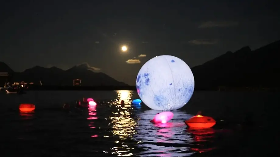 26.07.2024, 13:25 UhrUnter dem leuchtenden Vollmond in einem kristallklaren Bergsee schwimmen: Was romantisch klingt, ist mindestens genauso kalt und im österreichischen Obertrauern Tradition. Beim jährlichen Vollmondschwimmen trauen sich abgehärtete Wasserratten ins 16 Grad kalte Wasser und sorgen mit leuchtenden Bojen für ein farbenfrohes Spektakel.