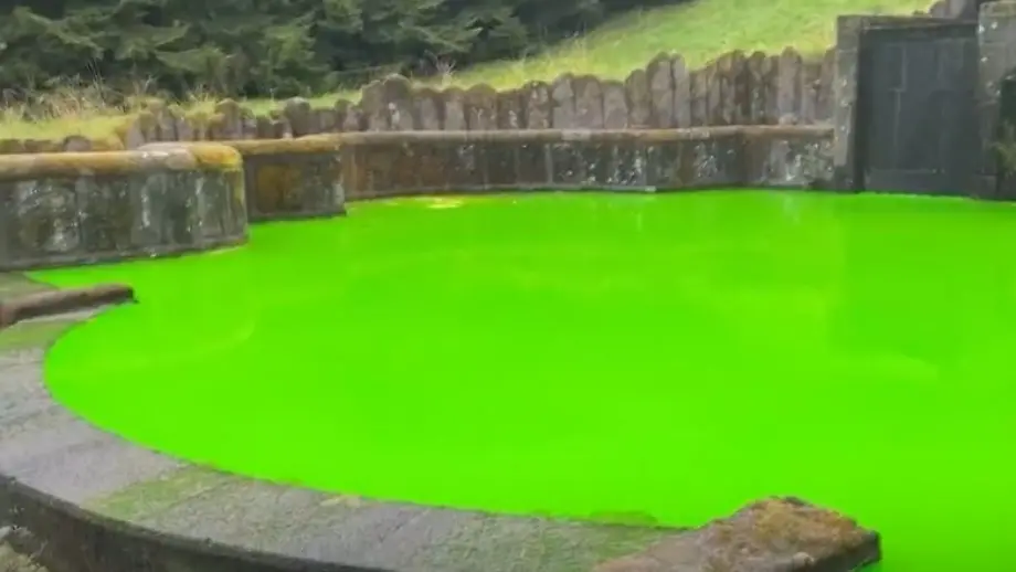 Vier Personen festgenommenWasser um Kassels Herkules-Denkmal strahlt giftgrün