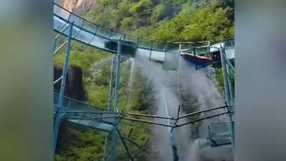 26.07.2023, 16:40 UhrTouristen erleben in einem Vergnügungspark im chinesischen Qujing Horror-Szenen. Aus einer gläsernen Wasserrutsche brechen in zehn Meter Höhe mehrere Teile heraus. Voll besetzte Schlauchboote krachen ineinander und bleiben über dem herabstürzenden Wasser hängen.