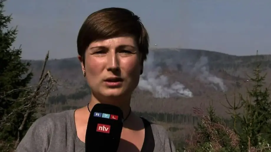 Reporterin vor brennendem Brocken"Wir sehen immer wieder Flammen auflodern"
