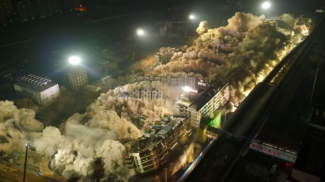 Kaum zu glauben, aber wahr Wohnblockanlage liegt in nur 10 Sekunden in Schutt und Asche