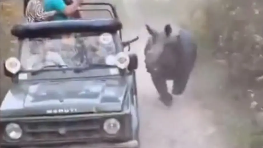 Tier nimmt Jeep aufs KornWütendes Nashorn macht Jagd auf Reisegruppe
