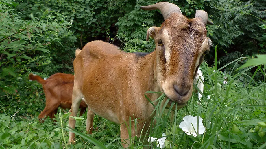 Natürliche UnkrautvernichterZiegen arbeiten als Friedhofsgärtner