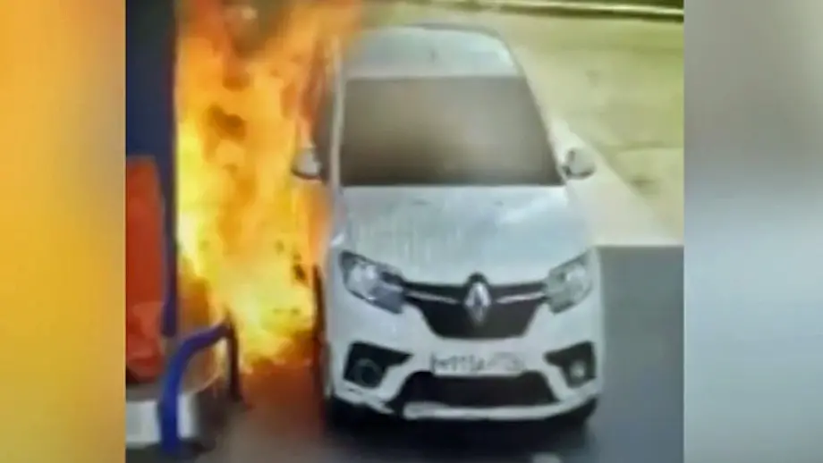 Schock-Aufnahme aus RusslandZigarette beim Tanken - Mann und Auto fangen Feuer