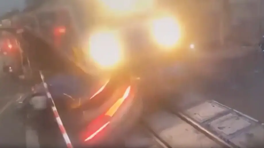 23.04.2026, 17:07 UhrIn Hanoi kann ein Mann in letzter Sekunde aus seinem Wagen springen, bevor dieser von einem Zug erfasst und durch die Gegend geschleudert wird. Das Auto steckt zuvor auf den Gleisen eines Bahnübergangs fest, da die Schranken sich nicht mehr öffnen.