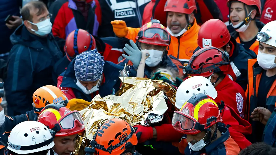 02.11.2020, 11:24 UhrIm türkischen Izmir finden Retter eine Dreijährige 65 Stunden nach dem schweren Erdbeben in den Trümmern eines zusammengefallenen Wohnhauses. Vor den Fernsehkameras ziehen Helfer das Mädchen aus dem Schutt und bringen sie zu einem Krankenwagen.