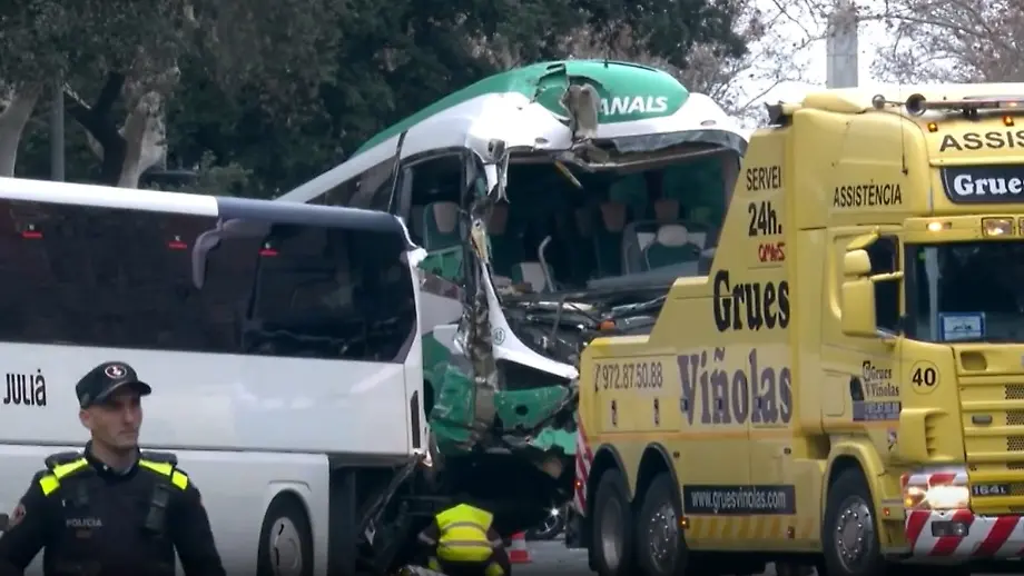 04.03.2025, 13:17 UhrBei einem Verkehrsunfall in Barcelona krachen zwei Busse zusammen. Mehr als 50 Insassen sind verletzt, vier davon schwer. In einem der Reisebusse fährt eine Gruppe junger Italiener mit - im anderen Kreuzfahrtpassagiere, unter denen sich auch Deutsche befinden.