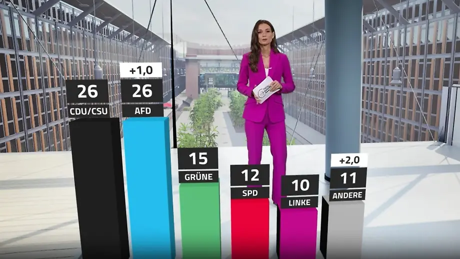 07.04.2026, 14:00 UhrAuch im aktuellen RTL/ntv-Trendbarometer würden die Regierungsparteien nicht auf eine Mehrheit kommen. Die in Teilen gesichert rechtsextreme AfD kann einen Punkt zulegen und ist damit gleichauf mit der Union. Das BSW fällt derweil unter die Drei-Prozent-Marke. Auch die FDP würde es nicht in den Bundestag schaffen.