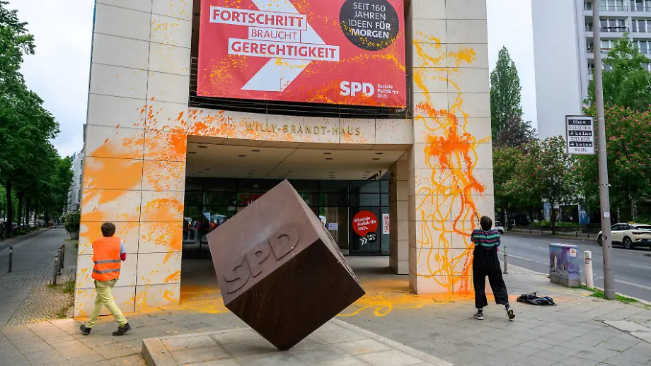 "Finde das total bekloppt"Aktivisten beschmieren SPD-Zentrale nach Scholz-Kritik