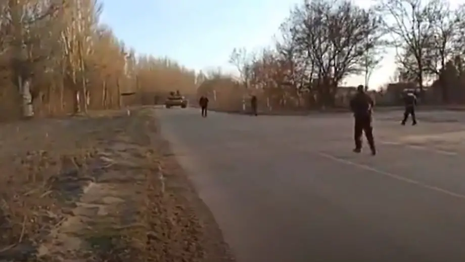 Heldenmut oder Propaganda?Bürgermeister überredet anscheinend Panzer zur Umkehr