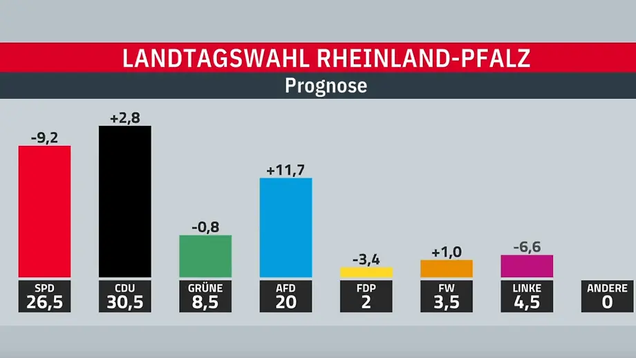 AfD macht Sprung in Rheinland-PfalzCDU liegt nach Hochrechnungen vor SPD