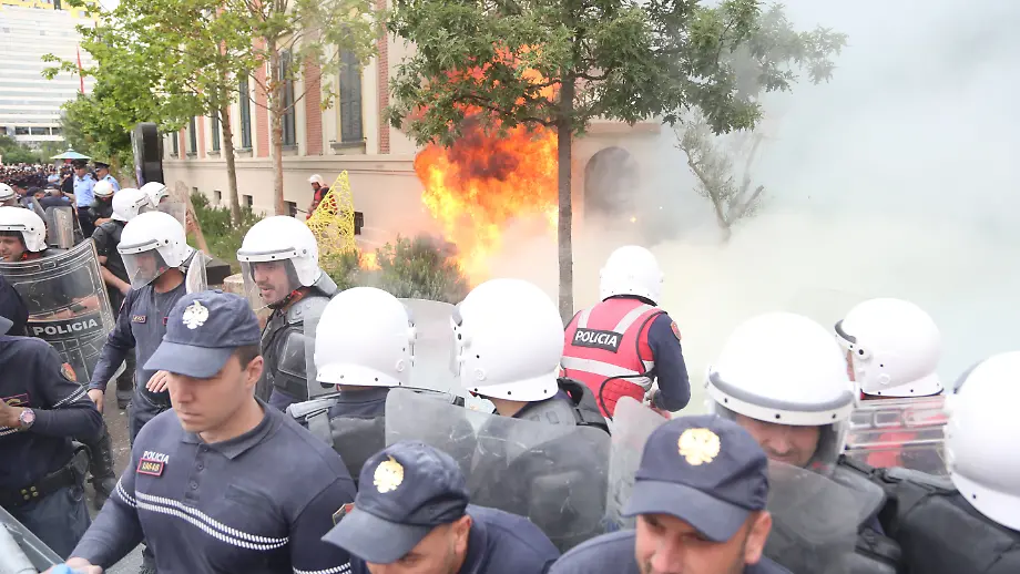 Proteste wegen KorruptionsvorwurfDemonstranten werfen Benzinbomben auf Rathaus in Albanien