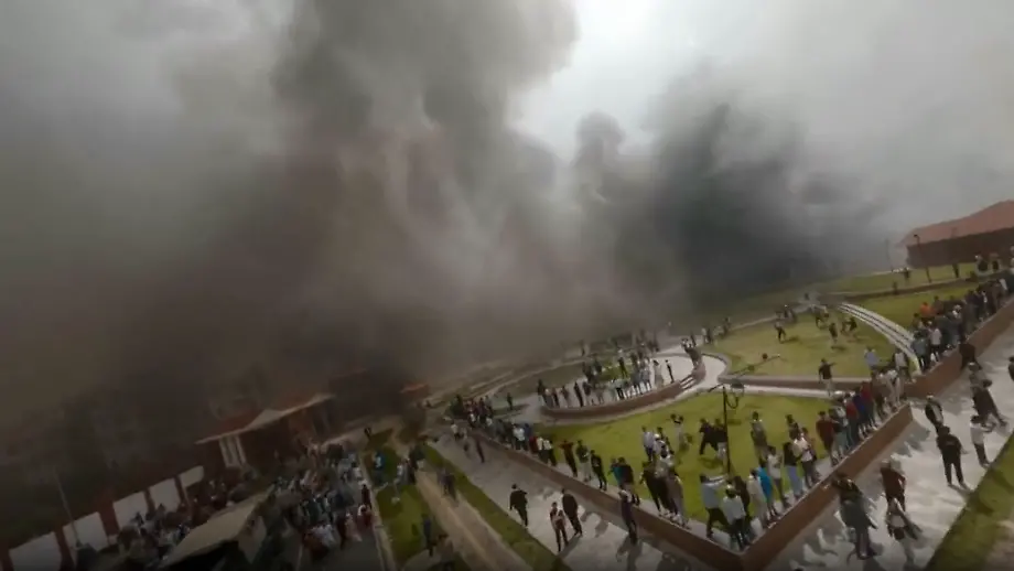 Drohnenflug zeigt RauchsäulenDemonstranten zünden Politikerhäuser in Nepal an