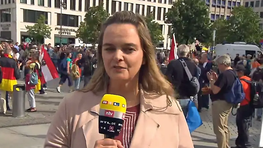 29.08.2020, 12:39 UhrDie Demonstration gegen die Corona-Politik formiert sich nun langsam vor dem Brandenburger Tor. Nach einer anfänglich entspannten Stimmung, werde die Lage nun nach und nach ernster, wie ntv-Reporterin Silke Haas in Berlin berichtet.