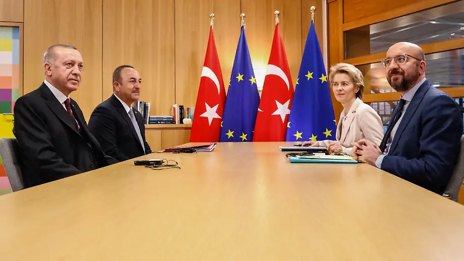 10.03.2020, 09:39 UhrDas Verhältnis zwischen Brüssel und Ankara ist äußerst angespannt, seit Erdogan erklärt hat, die Grenze zur EU sei für Flüchtlinge offen. Ein Treffen mit der EU-Spitze endet ohne greifbares Ergebnis. Kommissionschefin von der Leyen spricht dennoch von konstruktiven Gesprächen.