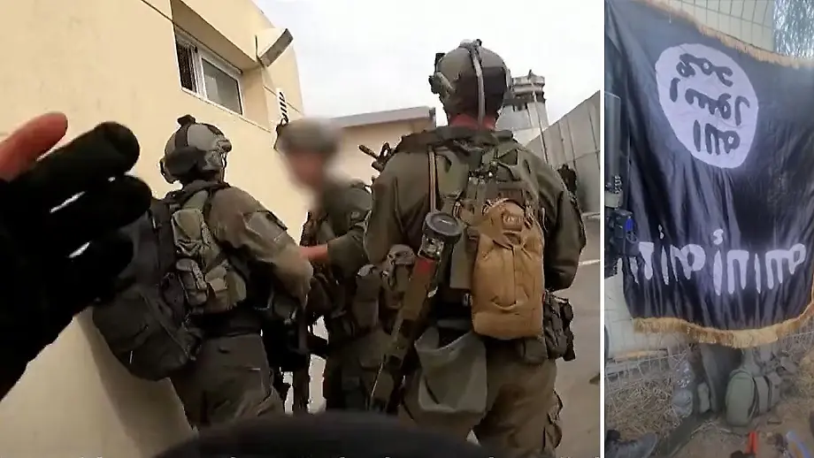 13.10.2023, 13:37 UhrBei der Rückeroberung der israelischen Militärbasis Sufa entdecken IDF-Elitesoldaten eine Flagge des IS. Das Militär veröffentlicht Aufnahmen der Operation. Armee-Sprecher Hagari wertet den Fund als weiteren Beleg für die enge Verstrickung der Hamas mit der Terrorgruppe.