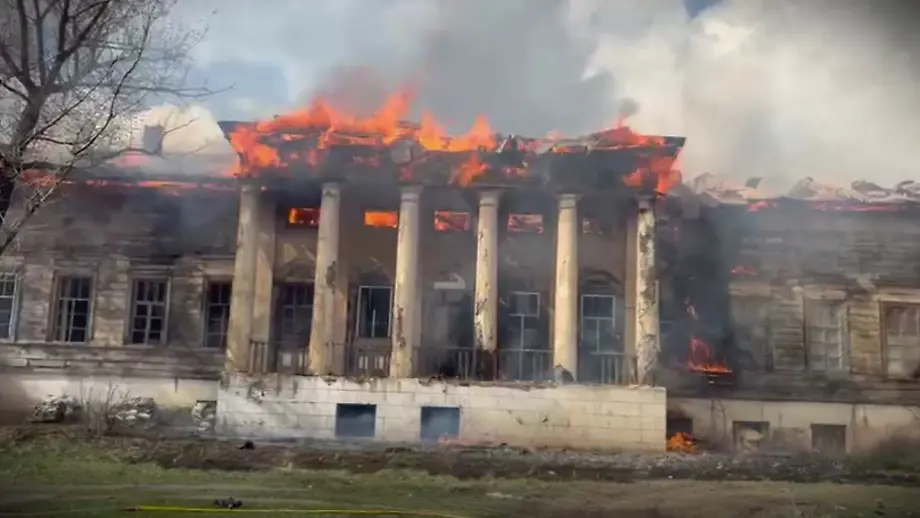 Nach russischem BeschussFlammen verschlingen historisches Herrenhaus in Charkiw