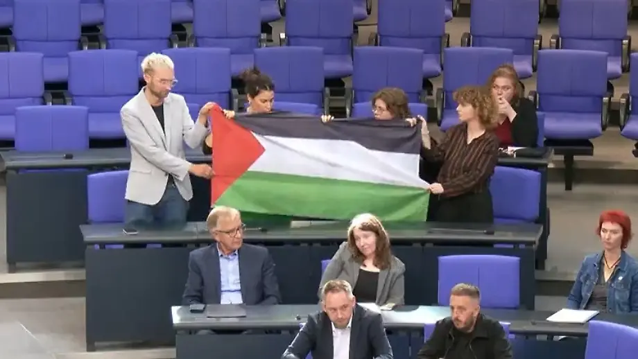 Empörte Rufe nach Flaggen-AktionGaza-Protest im Bundestag: Linken-Politiker fliegen raus