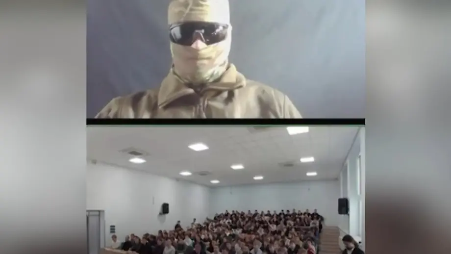 24.04.2026, 16:29 UhrEine Werbeveranstaltung des russischen Militärs an einer Hochschule nimmt eine unerwartete Wendung: Ein per Video zugeschalteter Soldat entpuppt sich als Ukrainer. Er hat eine unmissverständliche Botschaft für alle, die den Vertrag der Armee unterschreiben wollen.