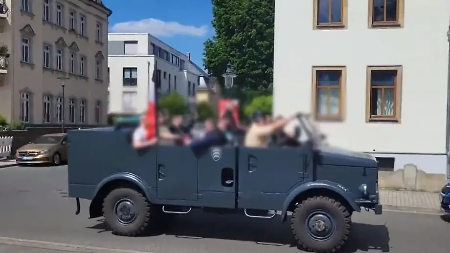 10.05.2024, 20:50 UhrIn Dresden ermittelt der Staatsschutz gegen eine Gruppe Männer - sie sind am Vatertag mit einem Militärfahrzeug unterwegs, das rechtsradikale Symbole beinhaltet. Gefilmt wird das von der ehemaligen Stadträtin. Den Männern droht nun eine Geld- oder sogar Haftstrafe.