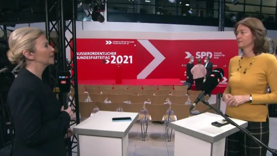 04.12.2021, 12:02 UhrDie SPD hält anlässlich des Koalitionsvertrags mit den Grünen und der FDP einen außerordentlichen Bundesparteitag ab. Nichtsdestotrotz ist auch die Pandemie ein großes Thema. Katarina Barley spricht über die Impfpflicht "als letztes Mittel" und verurteilt den Angriff auf Parteikollegin Köpping.