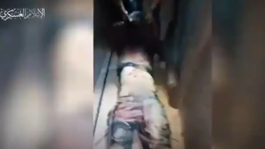 26.05.2024, 11:10 UhrDie Hamas veröffentlicht ein Video, das die Entführung israelischer Soldaten im Gazastreifen belegen soll. Auf der Aufnahme wird ein blutverschmierter Mann einen Korridor entlanggezogen. Auf Fotos soll die Ausrüstung israelischer Armeeangehöriger zu sehen sein.