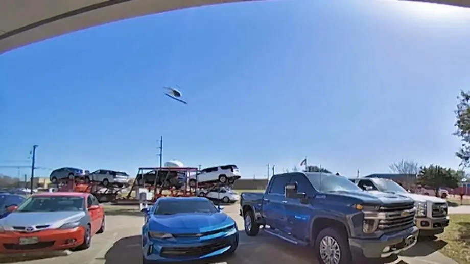 28.03.2022, 18:08 UhrIn einem Vorort von Dallas fällt ein Hubschrauber senkrecht vom Himmel, kracht auf die Wiese vor einem Einkaufszentrum und geht in Flammen auf. Die beiden Insassen sterben bei dem Unfall. Auf Videoaufnahmen ist zu sehen, wie die Maschine in der Luft vor dem Absturz taumelt und einen Rotor verliert.