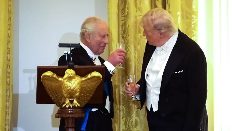 Trotz angespannter BeziehungHumor bei Bankett: Charles neckt Trump mit Kolonial‑Witz