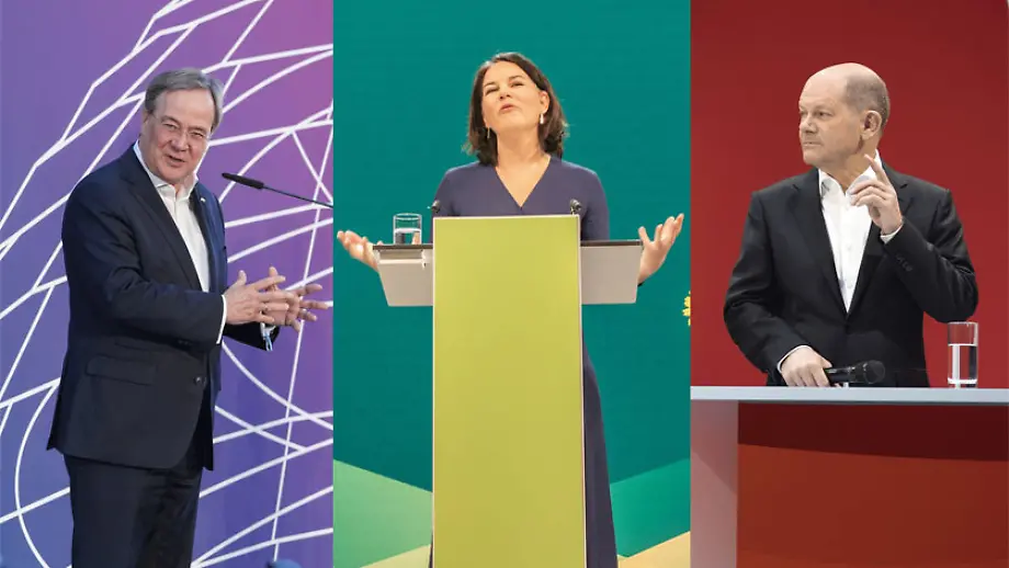 Laschet, Baerbock, ScholzKanzlerkandidaten skizzieren ihre Vorhaben